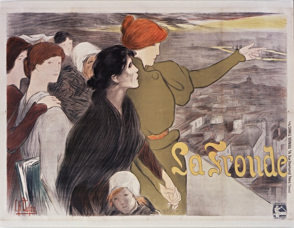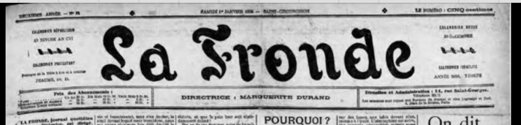 After a separation Durand and Laguerre divorced. Marguerite was then hired by Le Figaro – one of the most prestigious newspapers of the day. She began by writing a “woman about town” column. But, after covering an International Feminist Conference held in Paris, she was converted to the feminist cause and was encouraged to start a female run newspaper – La Fronde – which she did very successfully.