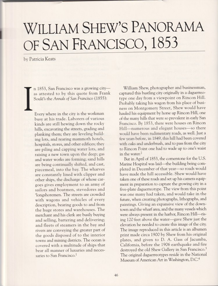 William Shew’s Panorama of San Francisco, 1853. The Argonaut: Journal of the San Francisco Museum and Historical Society, Volume 19, no. 1. Summer 2008.