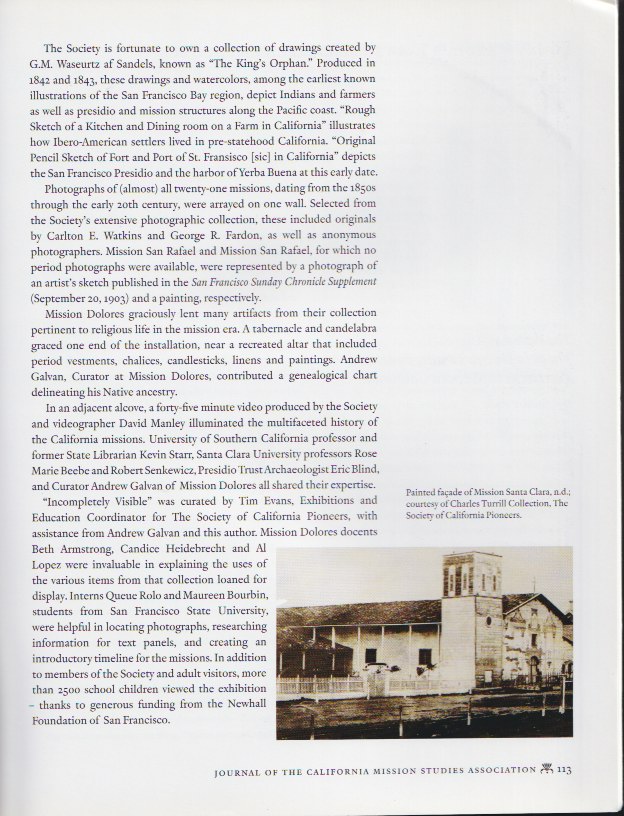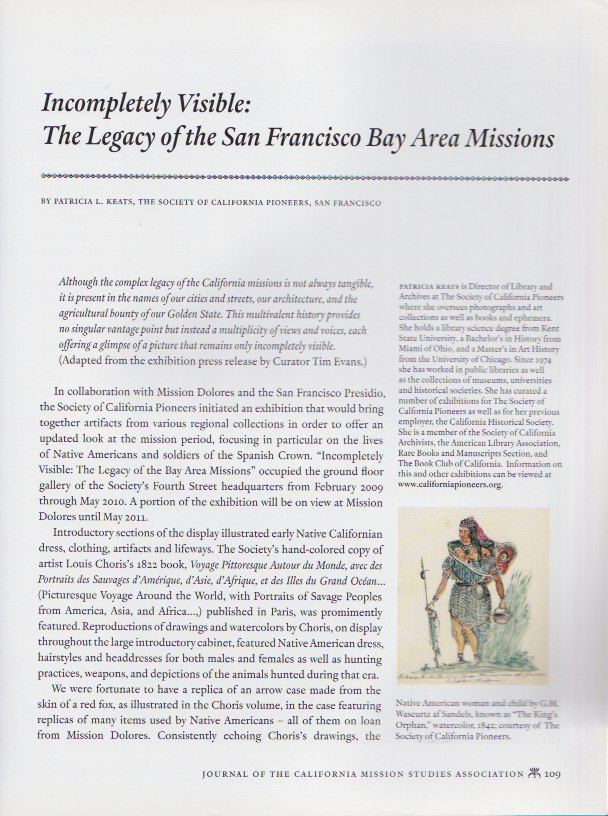 Incompletely Visible: The Legacy of the San Francisco Bay Area Missions. Boletin: journal of the California Mission Studies Association, Vol. 27, nos. 1 & 2, 2010.