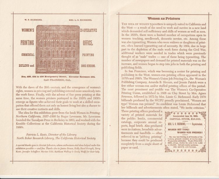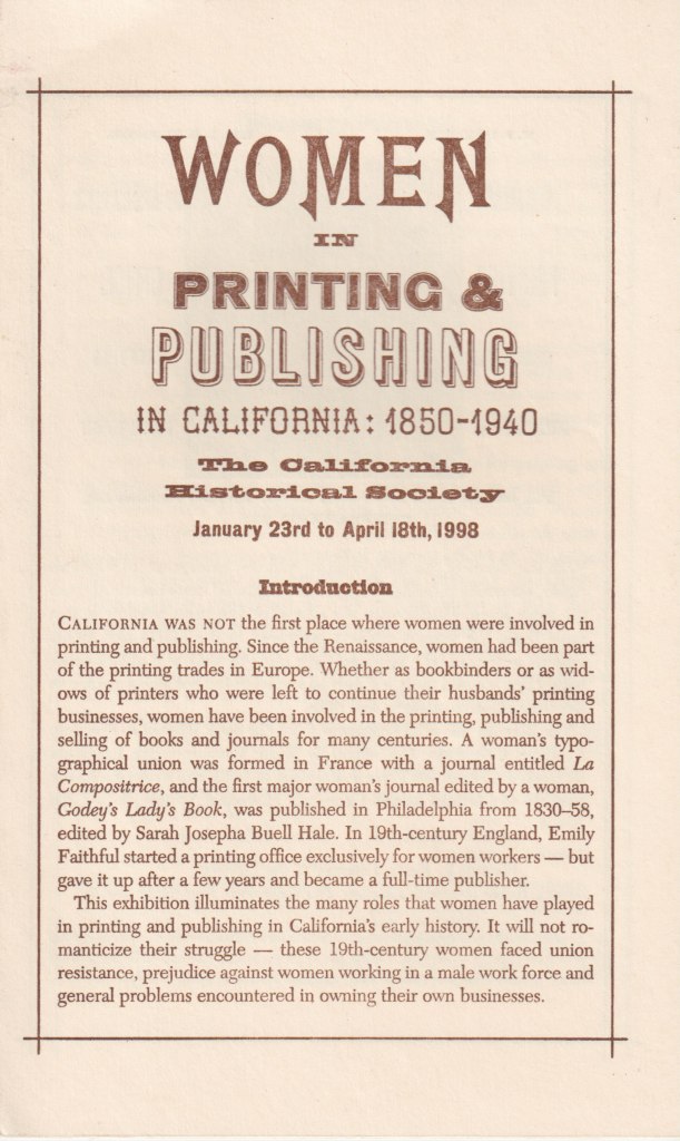Women in Printing and Publishing in California: 1850-1940. The California Historical Society, 1998.