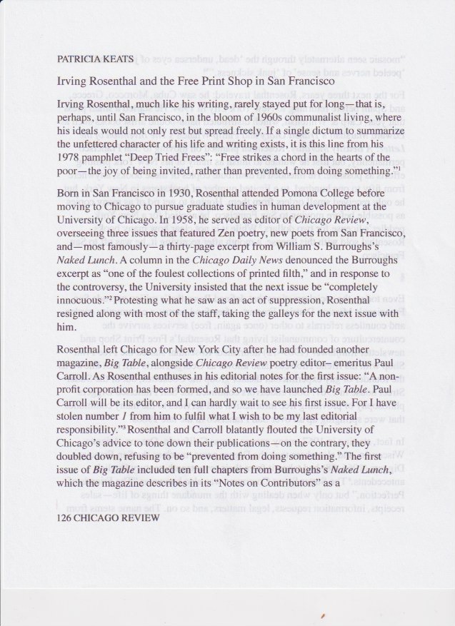 Irving Rosenthal and the Free Print Shop in San Francisco.The Chicago Review, Vol. 66, Issues 3/4 & Vol. 67, Issue 1, 2023.